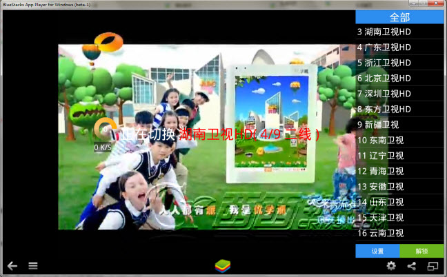 通过上图我们可以看到龙龙直播的主界面除了16个卫视之外只有两个功能按钮,一个是用来锁频的按钮,另一个是设置按钮,我们重点来说说设置这个按钮。