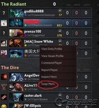 DOTA我们熟悉的换英雄都是-swap x,在DOTA2中则不是输入这个命令。