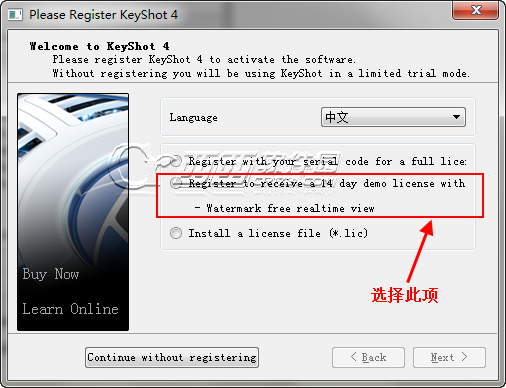 1、首先我们要下载keyshot4中文完整安装版软件,下载完毕后直接点击安装程序,安装界面虽然是英文,但在安装完毕后进入软件主界面可以设置成中文。