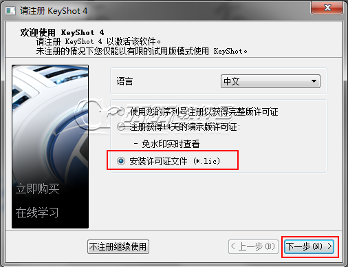 4、打开keyshot4,点击帮助中的注册许可证