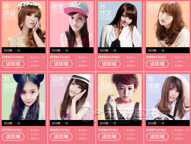 5、线上投票得分将按玫瑰数来统计,第一名40分,第二名30分,第三名20分,第四到八名10积分;