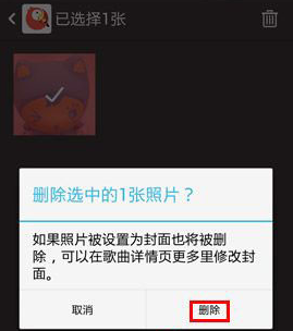 4、选择要删除的照片后点击右上角的“删除”按钮,在弹出的提示框中的点击“删除”即可。
