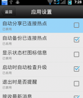 第六步:最后还有最重要的一步,就是在使用WiFi万能钥匙连接自己的创建的热点时,取消“分享热点”功能。打开“WiFi万能钥匙”,切换至“更多”选项卡,点击“应用设置”项。
