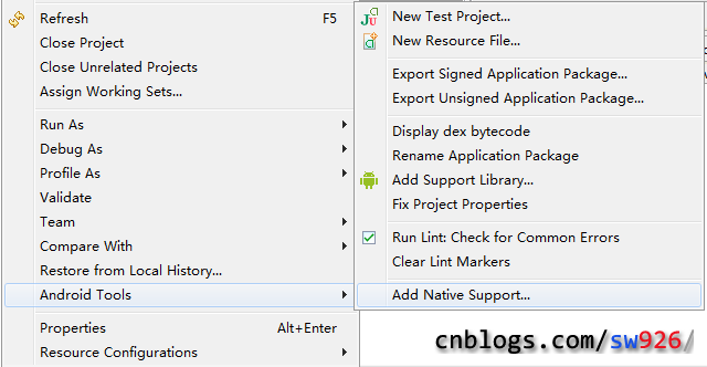 新建一个空白的Android工程,在根目录上点击右键Adnroid Tools - Add Native Support...