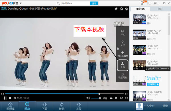 下面我们来看看优酷客户端界面下方的下载按钮有什么用。