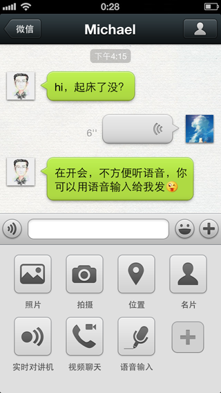 自主研发的语音识别技术,可直接在聊天中语音输入