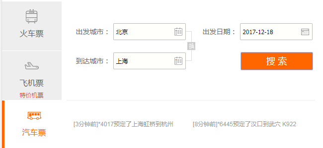 步骤二:在12308网站首页汽车票入口处查询预订车票;