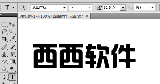 2、输入要制作的立体字文字,字体选择粗一点的比较好,小编使用的是汉真广标。