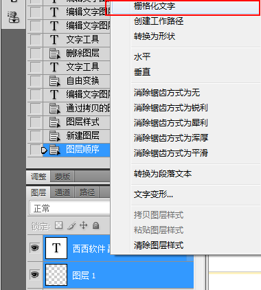 5、新建一个图层,把新建的图层拖到副本图层下面并将两个合并,合并前需要格栅化副本图层。