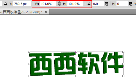 6、对合并后的图层按快捷键Ctrl + Alt + t 执行复制变形, 接着在工具栏输入拉伸数据,纵横拉伸的百分比例为101%. 101%,输入完毕后点一下文字然后把位置用小键盘向右箭头 → 移动一到两个像素按回车确定变形。