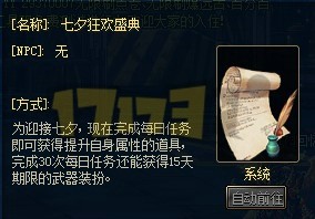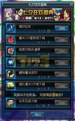 这次七夕活动依旧没什么看点,通过完成每日任务获得一些药水还有一把装扮武器,除了神灵庇佑跟霸体药水毫无亮点。