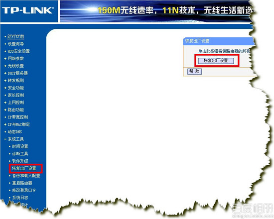 2 、进入路由器页面 找到恢复出厂设置 路由器恢复出厂 如图所示