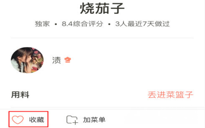 3、在菜谱界面,点击左下角的“收藏”,即可将该菜单进行收藏。