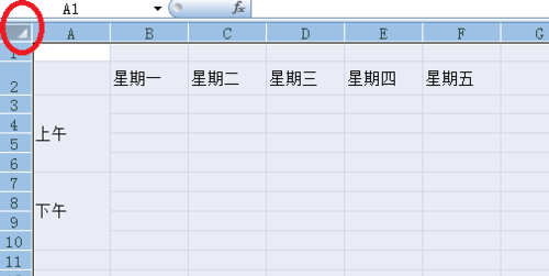 打开excel文件,excel文档的最左侧找到倒三角形标识,然后鼠标移动过去用左键单击它