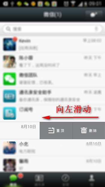 微信5.0有些小功能上做了调整,比如删除对话框的方法就修改了下,以前是长按对话框就有删除的选项,现在变成了往左滑动。