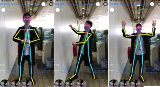 对于抖音尬舞机这一项黑科技,对方回应36氪是应用了今日头条 AI Lab 自主开发的“人体关键点检测技术”。依靠这项技术,抖音能够检测到图像中所包含人体的各个关键点的位置,从而实现从用户姿态到目标姿态的准确匹配。