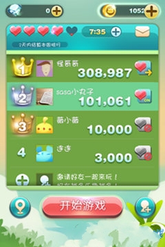 玩家进入游戏后,游戏有2个简单界面,选择道具界面和玩家排名界面,先选中分数排名的界面