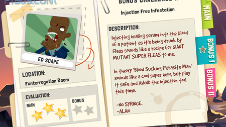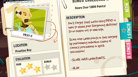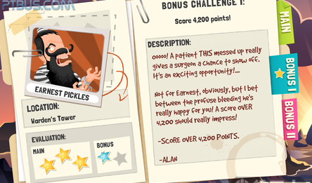 疯狂外科医生3第一关1-1十分简单很容易取得三星,然而追求完美的玩家当然不会就此罢休啦,因为Bonus还没拿到。Bonus 1(下面简称蓝星或四星)取得条件很简单,全程无失误进行一次手术即可。