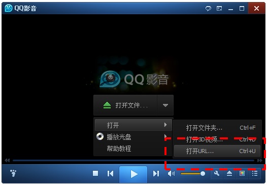 2. 观看时,在另外一台机器上,打开支持播放URL视频的播放器,推荐使用QQ影音或SMPlayer。以QQ影音为例,从菜单中选择“文件”->“打开URL”,输入该地址,即可观看。