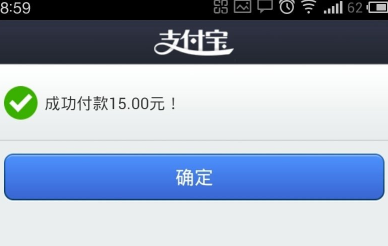 11、密码无误的话会比较快的支付完成,弹出“成功付款15.00元!”的提示信息了: