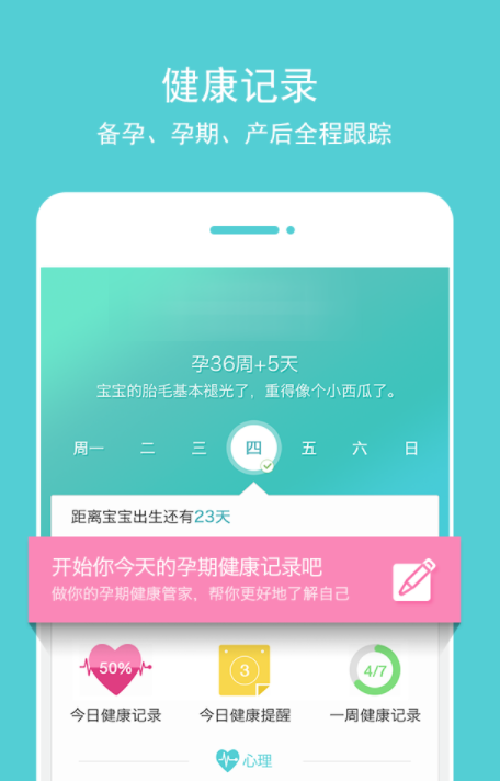3.然后再跟根据自己的实际情况添加专业孕期健康记录项,这款APP会及时给予健康反馈;