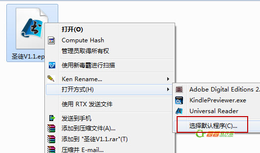 比如说,如下图的一个epub小说文件,因为注册表被串改破坏,失去了默认的打开方式,就像这样