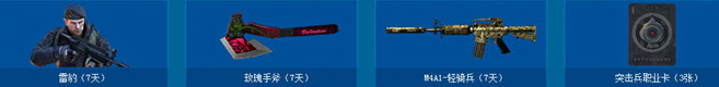 雷豹、玫瑰手斧、M4A1-轻骑兵、突击兵职业卡