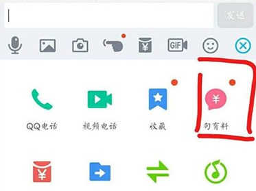 3、大家点击那个图标之后,就会有一堆延伸功能的小图标,如果你之前没有使用过“句有料”这个功能的话,在它的右上角就会出现一个小圆点。