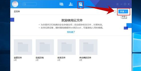 1.首先在TIM软件中登陆自己的QQ账号,登陆成功后在页面最上方的菜单栏中【云文件】如表,然后在云文件的内容页右上角点击【新建】按钮,如图所示。