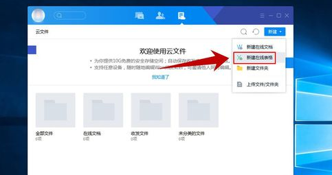 2.点击“新建”按钮后,在其下方会出现一个列表,在列表中选择【新建在线表格】。