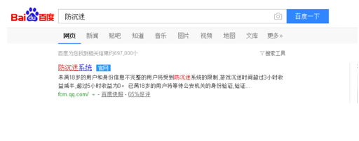 1.首先我们百度搜索防沉迷,然后打开一个有官网标志的网站