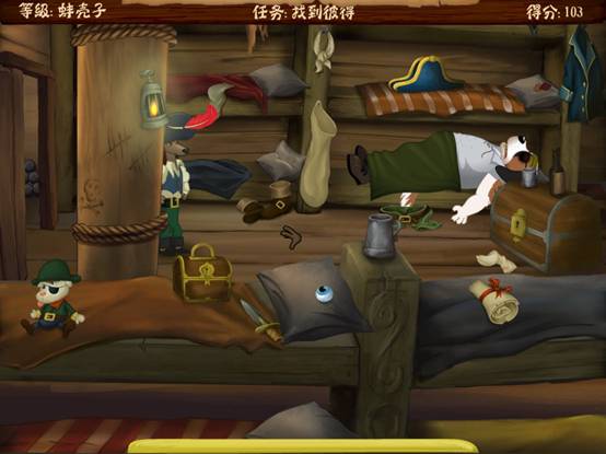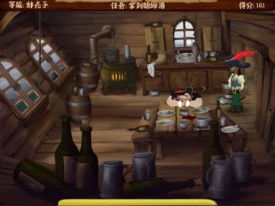 海盗靴中有 银币2/24,彼得要 酒,去左边场景5厨房找。