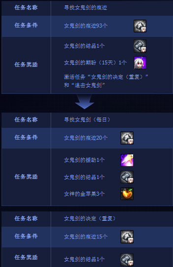 2完成寻找女鬼剑的痕迹任务之后,才能进行女鬼剑的决定(重复)任务和寻找女鬼剑任务;