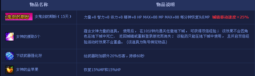 4活动中奖励的道具,将会在9月24日早6:00全部删除; 5武器强化符只能在普通地下城中使用。