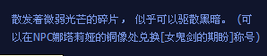 用女鬼剑的痕迹制作的结晶。 (可以在娜塔莉娅的铜像处兑换道具)