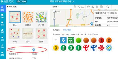 7.同一图层上的标注样式,可按需进行批量设置,目前常用的标注显示有六种:默认、海量点、热力图、分类、文本、排序。