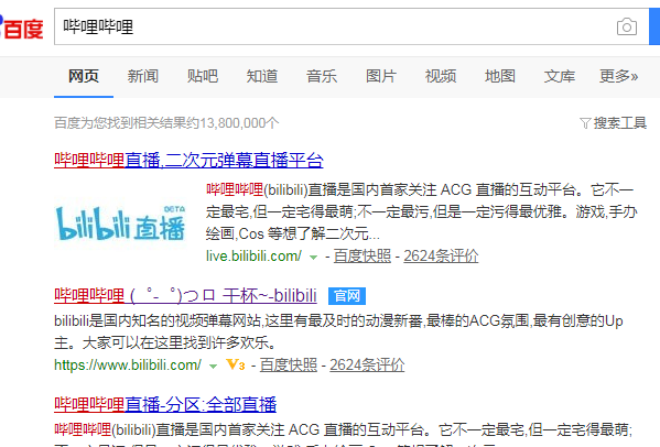 1.首先,我们在百度上搜索哔哩哔哩,然后点击进入哔哩哔哩首页