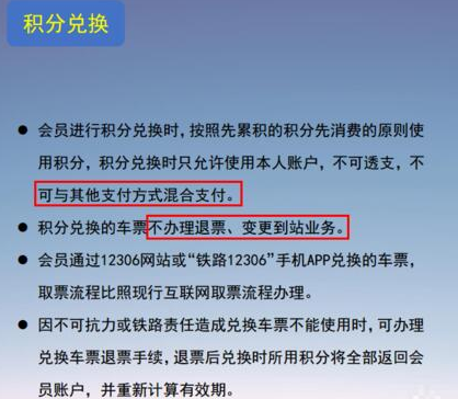 目前阶段积分只能用来抵扣火车票票款,不支持混合支付,而且兑换的车票不能退票改签。