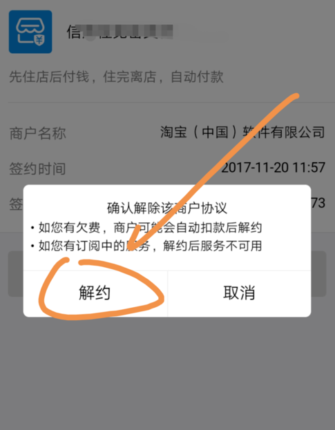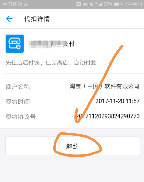 11.在之后的界面点按解约就会取消这项自动扣款。