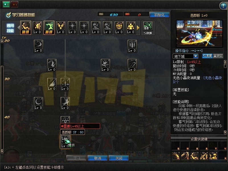 从图上来看,女鬼剑未开放TP技能(本次转职也未开放觉醒)