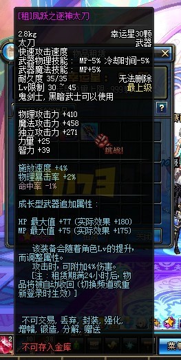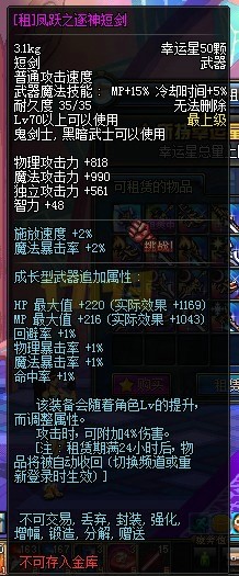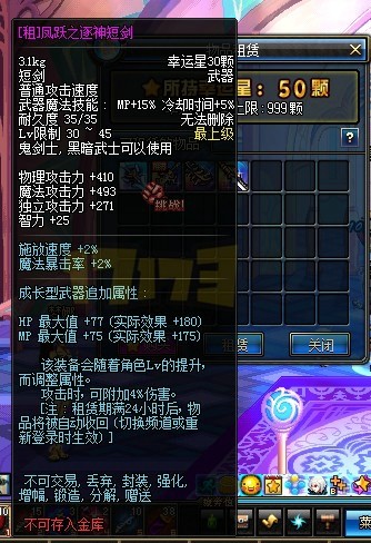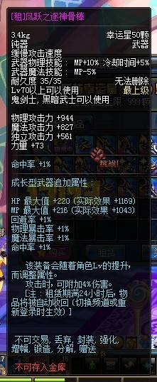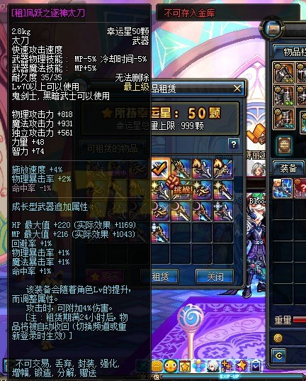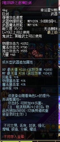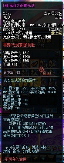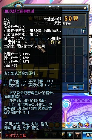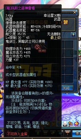 每个等级范围内可以看到和租赁的武器也有所不同,武器属性随着自身等级而成长,以下为34级的驭剑士可用属性: