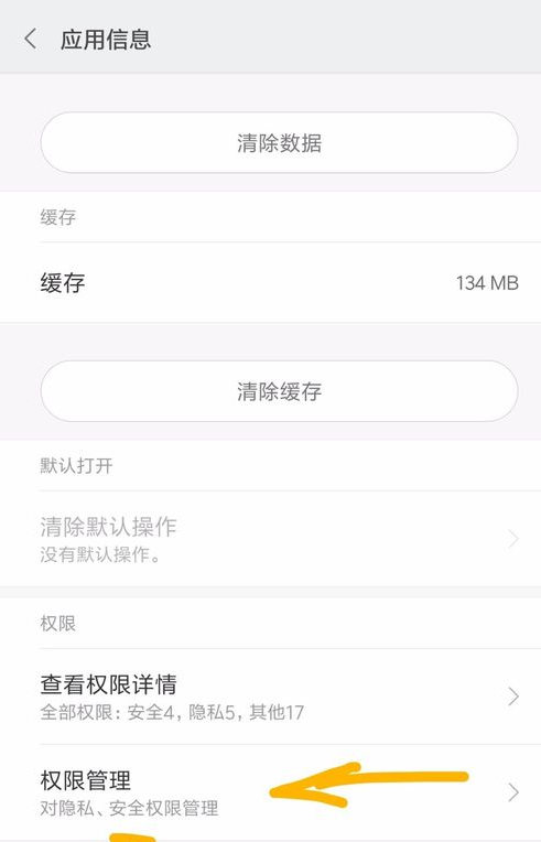 3.然后,点开上图屏上权限申请的“设置”,点开后,将屏幕一直向下拉,找到“权限管理”菜单,然后点开。