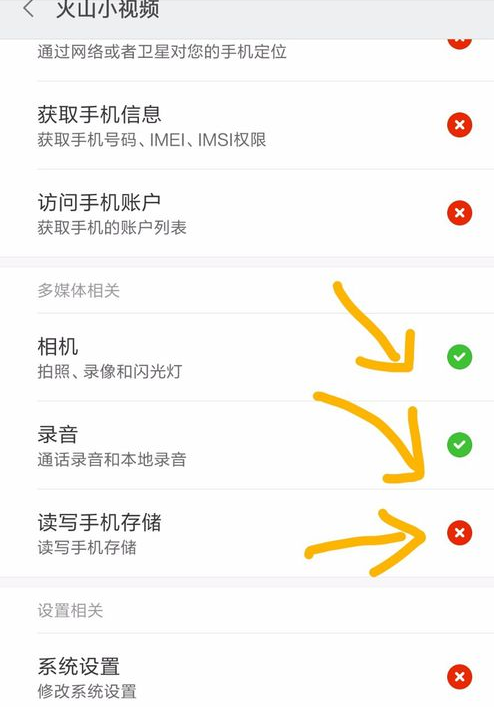 4.点开“权限管理”后,找到下面黄色箭头画的选项符号,将此3项统统点成绿色“✔”。