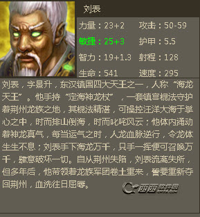 刘表的主要属性是敏捷,这意味着他可以走输出路线,但事实上是刘表的敏捷成长太低,就算起来了也比传统输出差一大截,所以刘表一般走法装路线,也可以半输出,半法术,非常灵活。