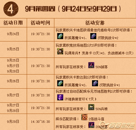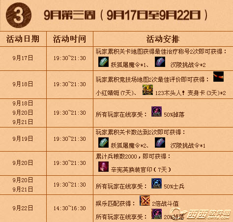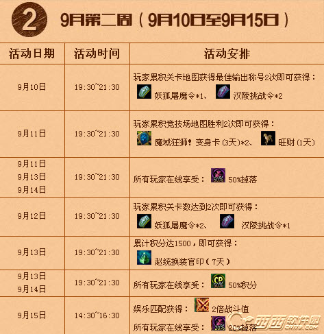 从上面的活动分布可以看出,基本上活动都集中在每天晚上7点半到9点半这两个小时,也是玩家们玩游戏的黄金时间,奖励也层出不穷,关卡副本玩家的奖励居多,各种掉落以及增加战斗值。不过竞技玩家还是有变身卡可以拿的哦,玩家们还请好好收藏,奖品多多,欢乐多多,天天惊喜等着你。