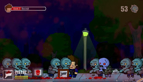 僵尸有三种。紫色僵尸速度很快,但是比一般僵尸脆(Riot Shield砸一下就挂了)。而差不多杀400-500僵尸后才出现的那种速度一般,但是很厚,Sniper Gun要三四枪才能解决。