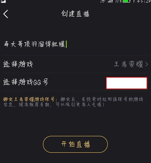 5.然后需要自己设置一下自己需要直播的房间名称以及自己想要直播的内容。