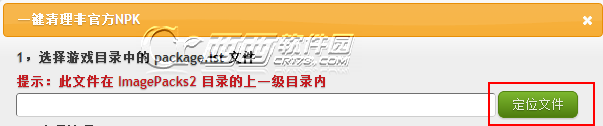 2、点击一键清理后会弹出一个对话框要选择游戏安装目录中的package.lst来定位官方的npk文件。