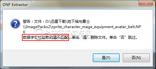勾选了删除前再次确认会弹出以下对话框,这代表这个npk文件大小相同但是内容不同。