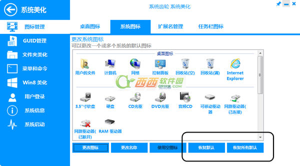 如果大家想要恢复成原来的系统图标,点击恢复默认即可。